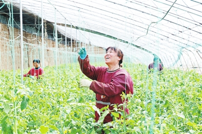 4月19日,在壶关县龙泉镇水池村的西红柿种植大棚内,村民们正在忙碌着。近年来,壶关县通过大力发展特色产业,带动农民增产增收。 王潞璐 摄