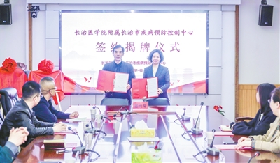 本报讯 (记者 黑晓晓)4月14日,长治医学院附属长治市疾病预防控制中心、长治市预防医学研究院签约揭牌仪式在长治医学院举行。双方就带教培养、学术交流、科研项目申报以及建立长期合作机制进行深入讨论,共同探索发展新途径,这标志着校地合作迈入一个新阶段。