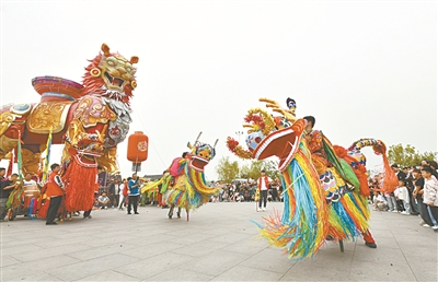 “五一”期间,我国各地推出丰富多彩的旅游产品供给,加强文旅融合和科技赋能,提升管理水平和服务品质,带动旅游消费欣欣向荣。图为游客在河北省沧州市园博园观看麒麟舞表演。