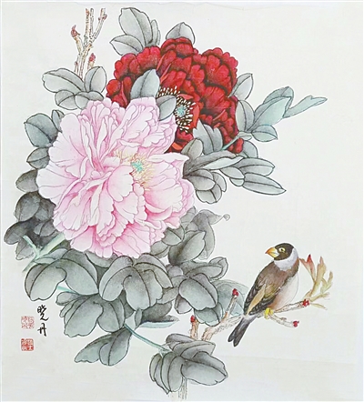 牡丹栖雀图(国画)