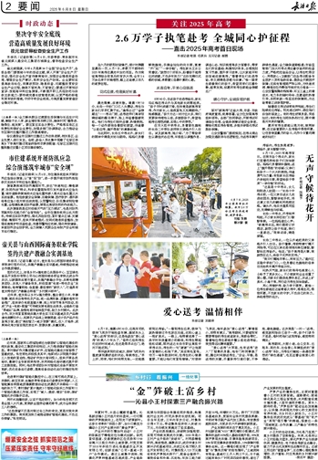 当六月的骄阳初绽锋芒,倒计时牌翻至最后一页,6月7日,承载万千期待的2025年高考在晨光中如约而至。作为我省高考综合改革后的首次大考,全市2.6万余名学子怀揣理想,踏上这场意义非凡的逐梦征程。