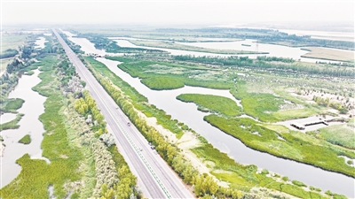 夏日,黄河宁夏段滩涂湿地绿意盎然,生机勃发,尽显生态之美。