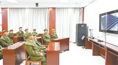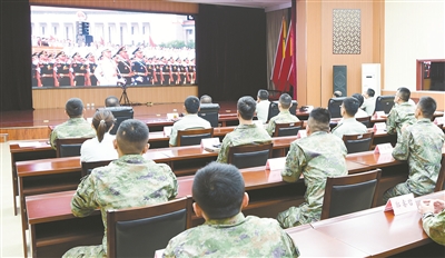 图②:长治军分区组织官兵文职人员集中观看大会直播。石玉成 摄