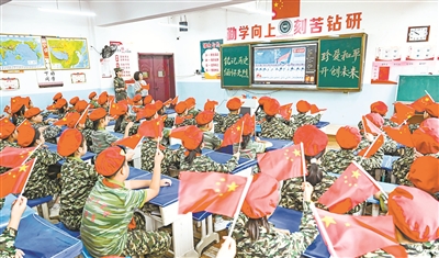 图③:潞州区新华小学组织学生们观看大会直播。本报记者 梁栋 摄