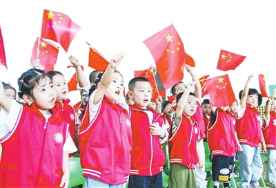 图⑤:武乡县机关幼儿园组织小朋友们观看大会直播。本报记者 孙发明 摄