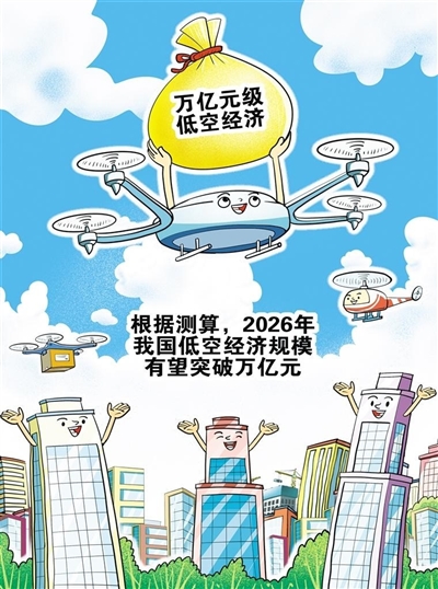 作为全球竞逐的战略性新兴产业,今年首次写入《政府工作报告》的低空经济正加快融入各行各业,深刻改变人们的生产生活,市场规模不断壮大。据测算,2026年我国低空经济规模有望突破万亿元。低空经济是以有人驾驶和无人驾驶航空器的低空飞行活动为牵引,辐射带动相关领域融合发展的综合性经济形态,具有成长性高、产业融合性强、产业链条长、应用辐射面广的特征,蕴含着巨大投资价值和增长潜力,对城市建设和区域产业发展意义重大。在国家政策推动、巨大市场规模等多重因素叠加下,不少地区前瞻性地对低空经济展开相关布局,抢抓低空经济“风口”。接下来,要更好统筹发展与安全,从空域管理、飞行审批、配套设施建设、法规标准体系等方面强化政策支持和安全保障,助力低空经济飞得“更高”。