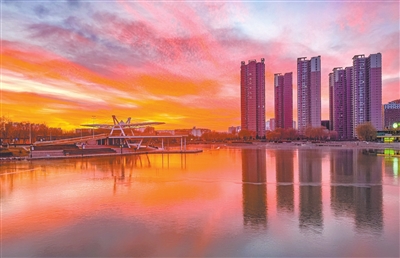 12月16日傍晚,我市淮海公园上空出现绚烂的火烧云,蔚为壮观。层层彩霞染红天际,与城市灯光交相辉映,湖面波光粼粼,倒影如梦似幻,为冬日的长治增添了一份别样的魅力。 本报记者 司敏 摄
