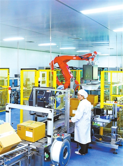 12月16日,山西振东年产10亿袋颗粒剂生产线外包车间,技术人员在生产线上忙碌。近年来,振东集团加大科研投入,强化市场开拓,形成集中药材种植、加工、研发等于一体的产业发展格局。     本报记者 张国平 摄