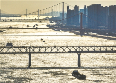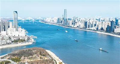 图①:2024年1月23日,船舶行驶在长江武汉江段水域(无人机照片)。