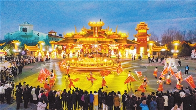 元宵节,是中华民族的重要传统节日,寓意团圆和美。连日来,我市各地闹元宵活动丰富多彩,人们在吃元宵、赏花灯、猜灯谜、品美食中感受喜庆祥和的节日氛围。图为欢乐太行谷景区灯火通明,游人如织。