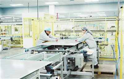 2月9日,在山西潞安太阳能科技有限责任公司生产车间内,工作人员正在检查自动化串焊太阳能电池片。该公司目前拥有光伏一体化产能7GW,产品覆盖全尺寸P/N型高效电池、组件,能满足全场景光伏发电应用领域需求。