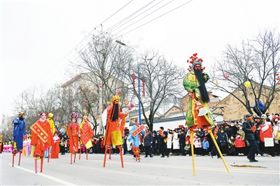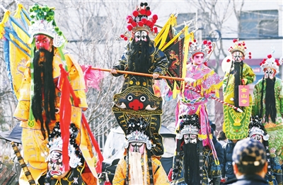 春节期间,“中国社火文化之乡”陕西省宝鸡市陇县年味十足,热闹非凡。从县城的大街小巷到乡村的田间地头,随处可见各类社火游演队伍。骑在马背上的“马社火”、将儿童架在肩上的“挈社火”、走村入户表演的“步社火”……各类社火特色鲜明,精彩纷呈,演绎神话传说和历史人物故事,营造出活力涌动、欢乐祥和的节日氛围。