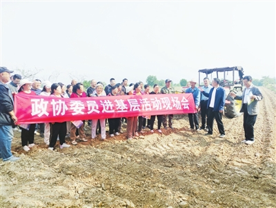 近日,黎城县政协组织政协委员深入洪井镇上台北村田间地头,现场对农民朋友进行玉米探墒沟播保苗技术培训。 周熙玲 摄