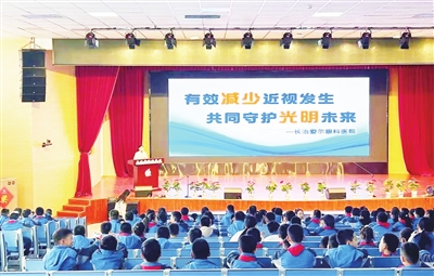 本报讯 记者黑晓晓报道:3月是近视防控宣传教育月,为切实做好青少年儿童近视防控工作,促进眼健康发展,3月25日,长治爱尔眼科医院的医护人员走进我市容海学校,开展了“开学第一课”公益宣讲活动。