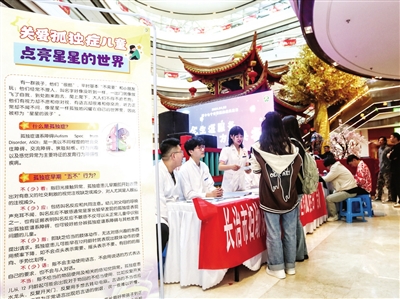 本报讯 记者黑晓晓报道:孤独症儿童常被称为“来自星星的孩子”,他们不善与人沟通,通常活在自己的小小世界里,就像星星一样,在属于他们的“夜空”中独自闪烁。4月2日是第十七个“世界孤独症关注日”,今年的宣传口号是“全生涯服务 全方位关爱”。为加强关爱孤独症儿童和孤独症筛查、康复、预防宣传教育,引导全社会关心、关爱孤独症患儿,3月29日,长治市妇幼保健院、长治市残疾儿童康复教育中心、潞州区残疾人联合会,在万达广场联合举办了“世界孤独症关注日”宣传活动。