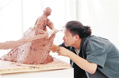 青年艺术家在聚精会神地创作作品。申鹏耀 摄