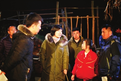 黄彩萍在拍摄现场与剧组工作人员协调与沟通。