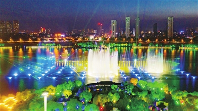 夜晚,华灯初上,东湖大型音乐喷泉“光影襄垣·水韵东湖”在夜幕下华丽开演。随着动听的音乐声响起,喷泉曼妙的舞姿如花朵般绽放在湖面上,水形组合随着曲目变化而变化,时而腾空飞起,气势磅礴;时而柔和婀娜,摇曳生姿。在彩灯的映照下,流光溢彩,五彩缤纷,与岸边的巨幕景观交相辉映,如梦似幻,游客连连赞叹,尽情享受浪漫小城的夏日魅力。