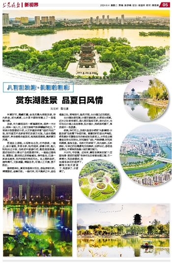 仲夏时节,晨曦初露,金色的晨光洒落东湖,浮光跃金,波光粼粼,山水草木都悄悄镀上了一层温暖光辉。