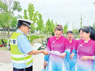 5月29日,该大队民警走进辖区开展交通安全宣传活动。民警借助广场舞大赛人员集中这一有利时机,面对面向群众讲解酒驾醉驾、超员超载、闯红灯、骑乘摩托车和电动自行车不戴安全头盔、驾乘汽车不系安全带等交通违法行为的危害性,并现场互动答疑解惑,引导大家做文明交通的参与者、践行者。