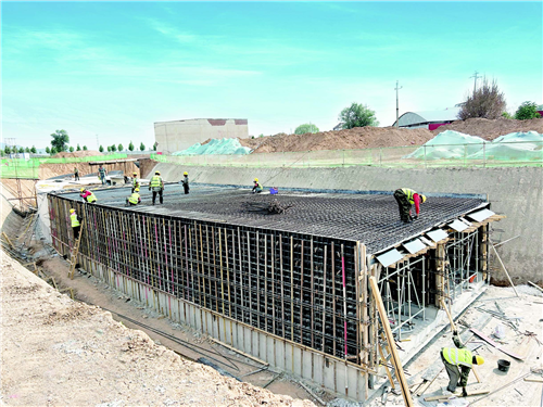 在老顶山冲沟及壁头河综合治理工程6号过水箱涵施工现场,工人们正在绑扎钢筋、搭建支架。作为过境潞州区最大的箱涵,6号过水箱涵全长510米,设计行洪流量为每秒111.9立方米。