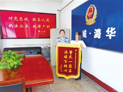 6月27日上午,一名群众将一面写有“警民一家亲、温暖百姓心”的锦旗,送到了潞城区潞华派出所民警的手中,向民警连声道谢。