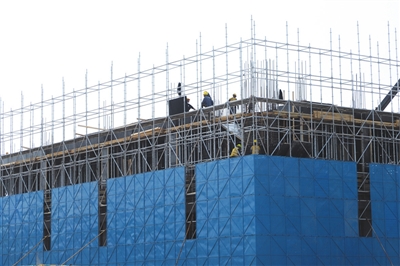 建设现场,一派繁忙火热、井井有条的景象。安全标语、质量标语挂满工地周围,材料运输车来回穿梭,一座座塔吊凌空挥舞着“长臂”;建筑工人的身影忙碌在钢筋板柱之间;现场的焊接声、切割声、锤打声共同奏响项目建设的夏日“进行曲”。