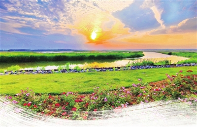 盛夏时节,日落时分,金色夕阳洒向宽广的湖面,微波粼粼,波澜壮美。漫步在漳泽湖国家城市湿地公园的小路上,犹如置身一幅浓墨重彩、斑斓绚丽的天然画卷中。