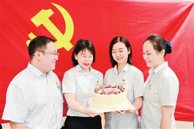 该行以生日祝福的方式庆祝中国共产党成立103周年。该行党员们一起歌唱《没有共产党就没有新中国》,祝愿伟大的党生日快乐,同时感受党组织的温暖关怀。大家纷纷表示,今后在各自的岗位上继续努力拼搏,不忘初心,为山西农信高质量发展贡献力量。