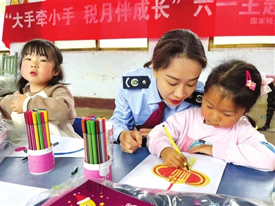 “小朋友们,你们看这个中心部分是一个‘税’字,象征着税务工作者的核心任务是征税。这个‘税’字与外部的圆形结合,形成了‘中’字,代表着中国税务的简称‘中税’。徽章的红色背景和金色边框,形似一只大红灯笼,寓意税务工作者必须保持清正廉明。”不久前,黎城县税务局工作人员走进幼儿园,开展了一次税务主题活动,让小朋友们认识税收、了解税收。