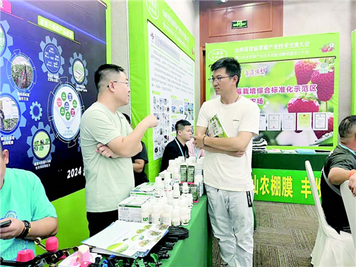 走进展销会现场,各参会企业带来的无土栽培技术、肥料、植物处方药、铺地材料等草莓全产业链产品和技术,吸引了大家的目光。