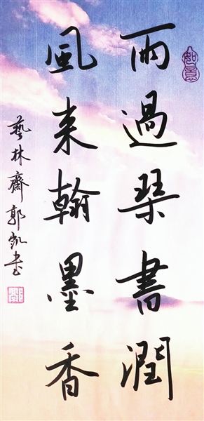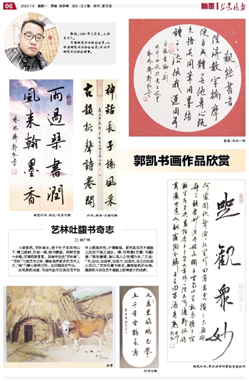 纵观郭凯油画、书法作品可见其在艺术创作上颇具灵性,才情横溢。更觉其在艺术道路上孜孜不倦之追求。清·刘熙载《艺概·书概》道:“笔性墨情,皆以其人之性情为本。”又说:“书,如也,如其学,如其才,如其志,总之曰如其人而已。”艺林吐馥书奇志,墨海扬帆济沧海。愿郭凯今后在艺术道路上取得更大的成绩。