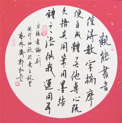 小者郭凯,艺林斋主;居于长子县发鸠山下、精卫湖畔、丹城一隅,能书善画。深耕艺培十余载,可谓硕果累累。其斋号自名“艺林斋”,“艺林”乃指艺书之林,意喻培养更多的艺术人才。“斋”乃静心修学之所。此可窥其志气也。