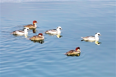斑头秋沙鸭(俗称熊猫鸭)国家二级保护动物。 摄于襄垣宝峰湖