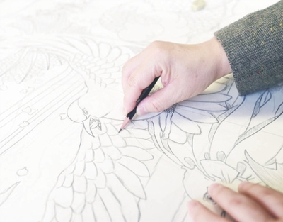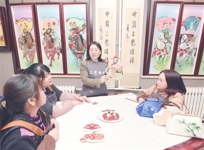 学习之路,绝非坦途。堆锦制作工序繁复,从选料用料、设计图案、剪出板样,到蒙上所需色彩的丝绸锦缎、絮入棉花,再到“拨折捏褶”,呈现出立体感和层次感,再到用特殊的颜料彩绘出细节,对人物、花鸟的巧妙装饰等,需经十几道工序,每一步都考验着制作者的耐心与技艺。韩玲从基础学起,谨遵师训,苦练线条,精研裁剪、“贴飞边”、絮棉花等技法。涂必成不仅传授韩玲技艺,更将传承的使命交付于她,生前常对她说:“我们只有传承的权利,没有放弃的权利。”师傅的话她铭记于心,并用行动践行着传承重担。