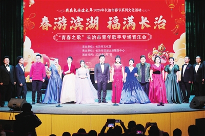 本报讯 记者郜盼报道:日前,“以歌寻梦”贾静独唱音乐会和“青春之歌”长治市青年歌手专场音乐会在市滨湖文旅服务中心钻石剧场精彩呈现。来自我市的知名青年歌手们通力合作,中外名曲荟萃一堂,用优美的旋律为观众送上美好的新春祝福。