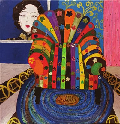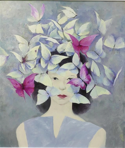 此次参展的作品偏重现当代艺术的表达,通过个体的生命情感体验,将女性自己的身体感受、情感梦想、性别意识、家庭伦理、心理欲望、童年记忆、文字交融、音乐通感等付诸画面,用色彩的隐喻、独特的构成、有意味的符号、综合材料和拼贴等方式,创造出她们独有的心灵场景。女性的感知是丰富而敏感的,通过她们灵动的笔触平衡着柔度与力度,抽象、归纳、延展,她们的作品形而上的意味更加明显,表达也更为丰富。