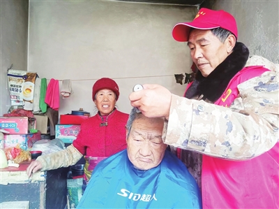 3月8日,见到王郭堂时,他正在登门为年老多病、不能出门的八旬村民王黑孩义务理发。王黑孩感动地说:“头发长了,郭堂一直想着我,他真是个好人!”