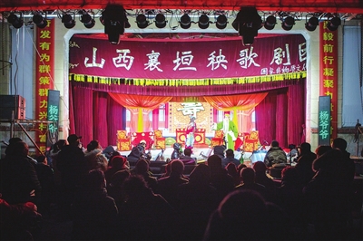当晚,王村镇史北村文化活动中心内人头攒动,一场独具地方特色的襄垣秧歌剧《五世请缨》正在精彩上演。舞台上,演员们字正腔圆,唱念做打,韵味十足。铿锵的伴奏、传统的唱腔、惟妙惟肖的表演,让整场演出高潮迭起。台下观众过足了戏瘾,掌声、喝彩声不断,并时不时拿出手机记录下精彩瞬间,近距离感受戏曲的魅力。