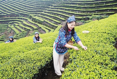 近年来,四川省泸州市纳溪区依托独特的气候、地域等自然资源优势,大力发展纳溪特早茶种植,目前拥有茶叶基地31.5万亩,年总产量2.3万吨,带动茶农5600多户,培育出茶加工企业100余家。新华社记者 江宏景 摄