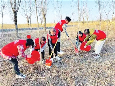 | 3月12日,潞州区五马街道北董村新时代文明实践站组织辖区居民进行义务植树活动。在种下绿色的同时,也强化了大家对保护生态、绿化家园的责任感和使命感。 本报记者 马嫣婕 摄 |