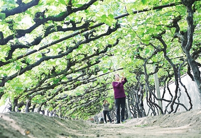 3月12日,河北省滦州市东安各庄镇的果农在大棚内管护葡萄。