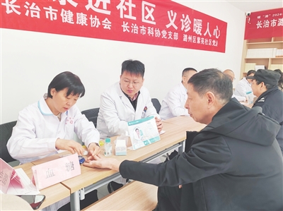 本报讯 记者王晶晶报道: 3月13日上午,市健康协会、市科协、潞州区紫苑社区联合市第二人民医院在紫金街道企退中心开展“健康进社区 义诊暖人心”免费义诊活动。