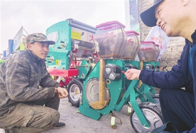 3月11日,在长治市农业机械总公司院内,选购农机的农户们络绎不绝。展销区各种型号的拖拉机、播种机、旋耕机等农机具排列整齐,春耕生产正陆续展开,农机市场进入销售旺季。