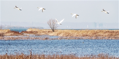 随着漳泽湖国家城市湿地公园生态环境的不断改善,吸引了各种鸟类来此栖息、繁衍,动物和城市的和谐相处给市民带来了不少乐趣。