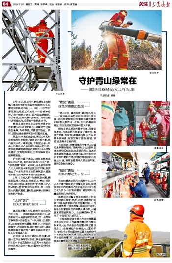 3月15日进入新一轮森林防火期,襄垣县坚持人民至上、生命至上,贯彻“预防为主、防灭结合、高效扑救”的思想,以“人防+物防+技防”联动为总抓手,把一张张防火网越织越密,最大限度保障人民群众生命财产安全。