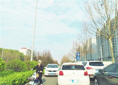 4月9日8时,潞州区北环西街沁芳盛世附近由东向西的车道上,不时出现逆行的电动自行车及机动车,造成了交通堵塞,同时也给自己和正常行驶的车辆、行人带来了安全隐患。 本报记者 摄