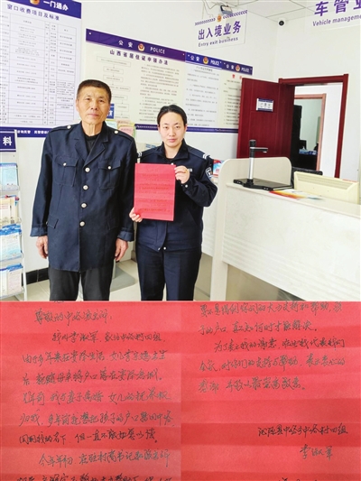 本报讯 户籍窗口虽小,却是与人民群众联系紧密的地方。4月8日,沁源县公安局中峪派出所户籍民警收到了一封真挚的感谢信。