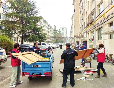 清运堆物堆料。“绿芽”志愿者在居民的配合下,对长期堆放在社区角落、楼道的木板、废材、破旧家具、废弃花盆以及泡沫箱等进行了清理。多处长时间困扰大家的“痼疾”被一一清理,狭窄逼仄的楼道变得干净敞亮,还消除了消防通道被堵占的潜在安全隐患。