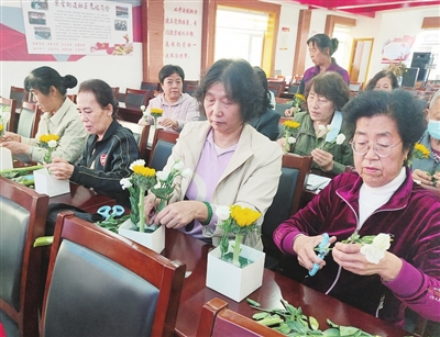 本报讯 记者王晶晶报道:4月16日,潞州区紫金街道组织企退人员在滨河西社区、兴安社区开展插花活动。
